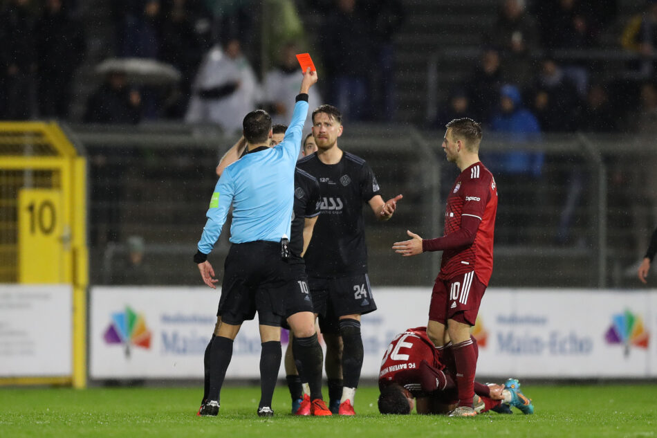 Die Rote Karte aus dem Spiel von Viktoria Aschaffenburg gegen den FC Bayern München II (08.04.) hat bittere Folgen für den Defensivspieler und den Verein