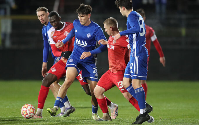 Den Start nach der Winterpause und der Vorbereitungszeit hätten sich die Verantwortlichen der Viktoria wohl etwas erfolgreicher gewünscht. Fakt ist aber, dass das Team von Cheftrainer Jochen Seitz am vergangenen Wochenende eine 1:4-Niederlage beim SV Wacker Burghausen hinnehmen musste. „Die Begegnung und das Ergebnis schnell abschütteln und auf das kommende Wochenende mit dem Heimspiel gegen den 1. FC Nürnberg II fokussieren”, lautete die Devise des Fußballlehrers schon kurz nach der Partie in Oberbayern. Tatsächlich hat sich die Mannschaft aber dann zu Beginn der Woche doch noch einmal genauer mit der Niederlage beschäftigen müssen, als Seitz gezielt Verbesserungsmöglichkeiten im Defensivverhalten thematisierte. „Die Restverteidigung hat mir bei eigenem Ballbesitz in der gegnerischen Hälfte nicht gefallen, da müssen wir gegnerorientierter agieren, um so die Umschaltbewegung des Gegners besser zu verhindern. Das haben wir uns im Video angeschaut und dementsprechend Trainingsinhalte darauf ausgerichtet”, erklärt Seitz.