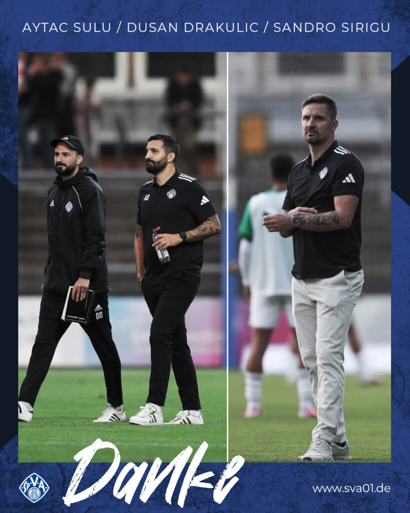Der SV Viktoria 01 Aschaffenburg bedankt sich bei Aytac Sulu, Dusan Drakulic und Sandro Sirigu für die geleistete Arbeit sowie das große Engagement am Schönbusch und wünscht allen privat und beruflich alles Gute.