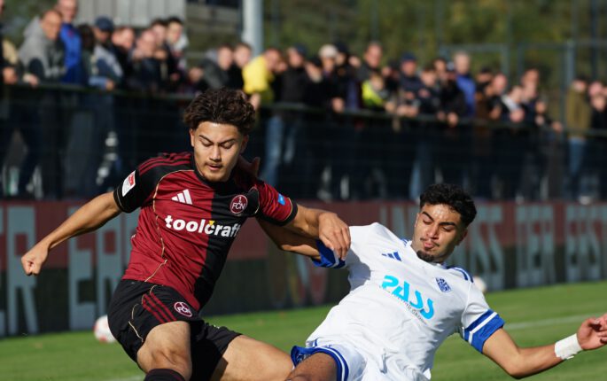 Fast direkt im Gegenzug setzte Adam Jabiri einen Flachschuss am langen Pfosten der Viktoria vorbei (8.). In der 14. Minute war es wieder Roberto Desch, der mit einem Distanzschuss zum Abschluss kam, das Tor von Schlussmann Luis Zwick aber deutlich verfehlte. Sechs Minuten später versuchte es Elias Niesigk mit einem Schuss aus der Drehung in zentraler Position, doch auch sein Torschuss ging über das Tor der Schnüdel. Bis zur 25. Spielminute waren die Weiß-Blauen gut im Spiel und hielten körperlich gut dagegen, danach nahm der Druck der Hausherren peu à peu zu. Nachdem in der 25. Spielminute Niklas Borger eine scharfe Hereingabe von Tim Kraus noch zum Einwurf klären konnte, musste drei Minuten später Schlussmann Max Grün all sein Können auffahren, um einen Kopfball von Tim Kraus mit einem starken Reflex gerade noch so von der Linie zu kratzen (28.).