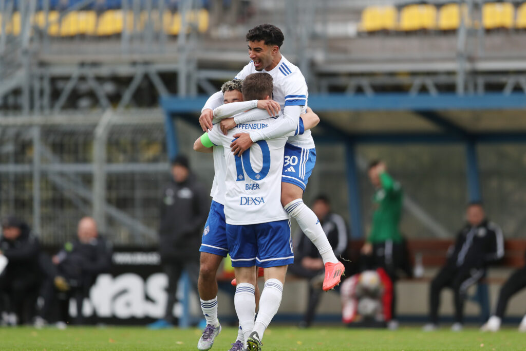 Aschaffenburg: Max Grün 27 (TW) – Nino Cassaniti 18, Hendrik Ehmann 3 (56. Justin Berg 20) , © Benjamin Baier 10 (79. Eren Bozan 24), Niklas Borger 5, David Néné 7 (46. Benjamin Franz 15) – Adrian Asani 17, Othmane El Idrissi 47 (90.+4 Maximilian Kohlert 25), Roberto Desch 6 - Lian Akkus Rodriguez 8 (46. Younes Azahaf 30), Georgios Makridis 9 (Trainer: Aytac Sulu)
