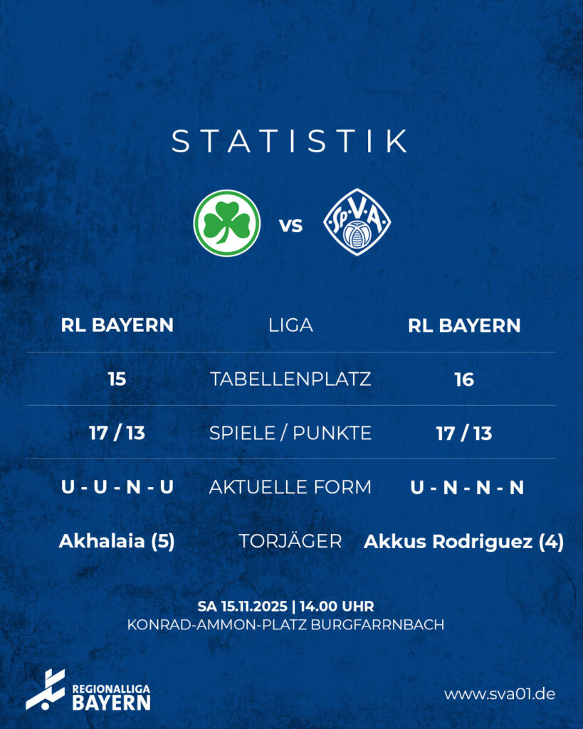 Die Nachwuchstalente vom Ronhof konnten speziell in den jüngsten vier Partien ihre teilweise sehr guten Leistungen nur bedingt in Erfolgserlebnisse ummünzen - drei Unentschieden und eine Niederlauge sprangen dabei heraus. In den zurückliegenden zehn Begegnungen durfte die Mannschaft des ehemaligen Nationalspielers und Bundesliga-Profis Roberto Hilbert nur einen Sieg feiern. Die viertjüngste Mannschaft des Regionalliga-Bayern-Tableaus zahlt hier derzeit noch Lehrgeld an die jugendliche Unerfahrenheit. Erfolgreichster Torschütze im Team der schnellen und umschaltstarken Mittelfranken ist Lado Akhalaia mit fünf Saisontreffern. “Wir treffen auf eine spielstarke Mannschaft, die zwar hauptsächlich versucht, alle Situationen mit spielerischen Mitteln zu lösen, aber durchaus auch mit langen Bällen hinter die Kette agieren kann. Es wird in jeder Hinsicht ein schweres Auswärtsspiel für uns, auch weil unsere Bilanz in Fürth nicht die allerbeste ist", bewertet SVA-Cheftrainer Daniel Solde die Ausgangslage.