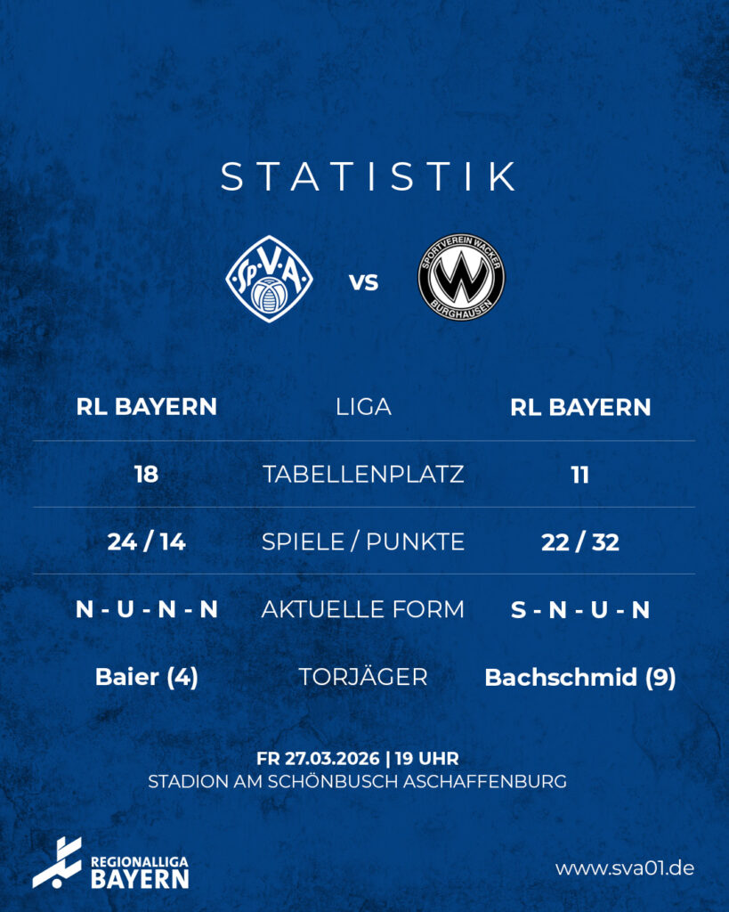 Am 25. Spieltag empfängt Viktoria Aschaffenburg am Freitagabend (27.03./19 Uhr) vor heimischer Kulisse die Mannschaft des SV Wacker Burghausen.